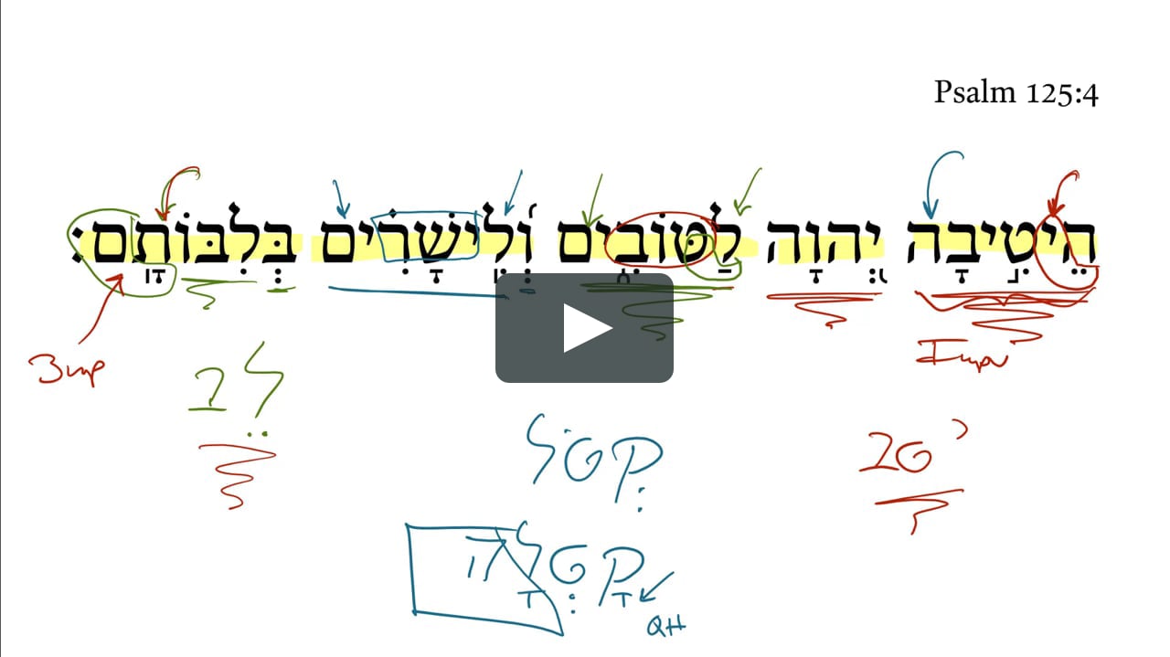 . Psalm 1254 Hebrew Study Bible Apostolic Interlinear היטיבה יהוה לטובים ולישרים בלבותם. Do good O LORD unto those that be good and to them that are upright in their. Psalm 1254 GODS WORD Translation GW 4 Do good O Lord to.